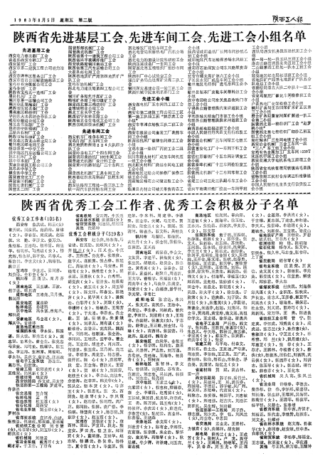 陕西工人报第2版 陕西省先进基层工会、先进车间工会、先进工会小组名单 陕西省优秀工会工作者、优秀工会积极分子名单