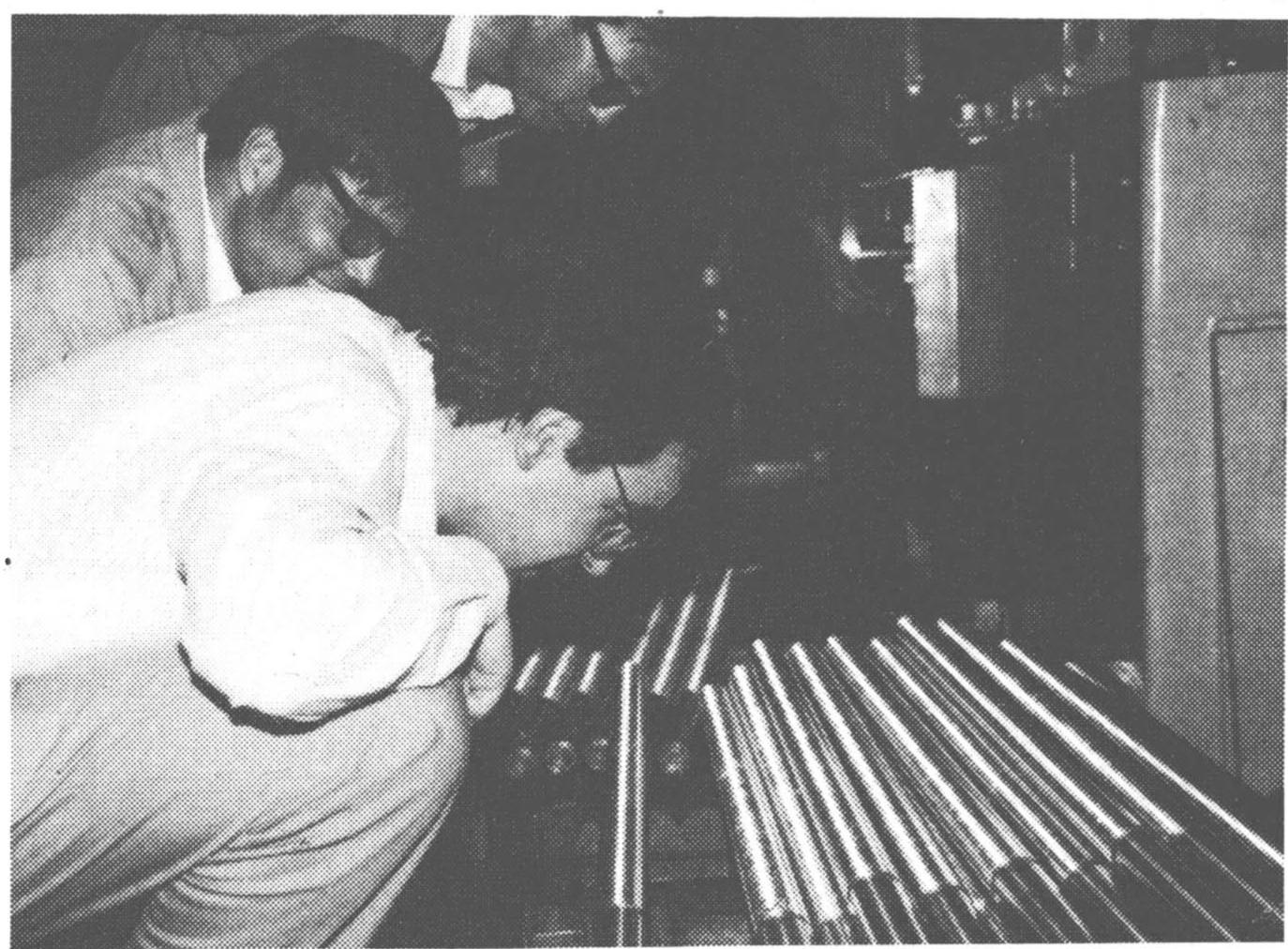 汉江机床厂在机制转换中,率先对滚珠丝杠分厂试行“万元产值工资含量承包”,在生产、技术、管理上进行改革,使滚珠丝杠的产值、质量大幅度提高,产品供不应求,国内外顾客盈门。这是不久前西班牙客商在参观该厂时,对滚珠丝杠产生了浓厚的兴趣。周莉 摄