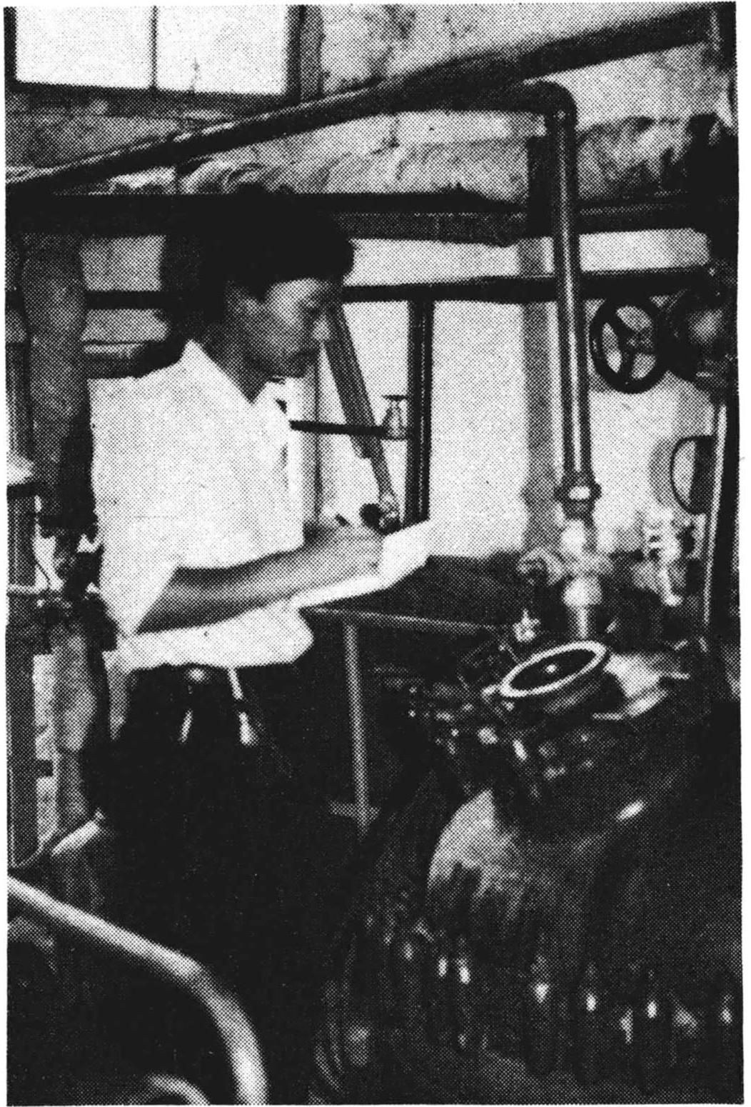 汉中地区油脂化工厂工会职工技协,帮助企业引进技术项目,开发新产品——软皮白油加脂剂(简称皮革加脂剂)试制成功,可年创利税30万元。图为操作人员正在调试记录有关数据。 李春建摄
