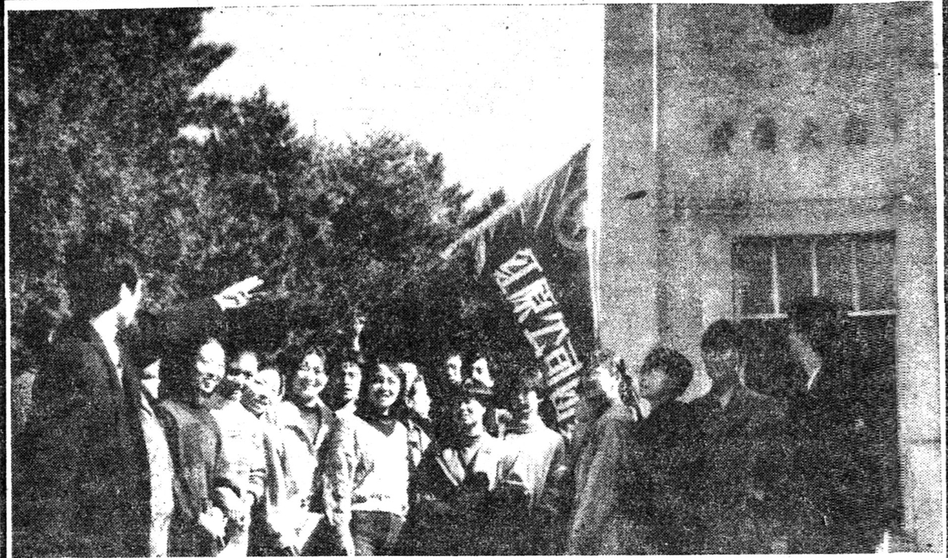 航空航天部红原公司团委近日组织40余名优秀团干部到革命圣地延安参观学习,接受爱国主义教育。图为团员们参观“七大”会址。