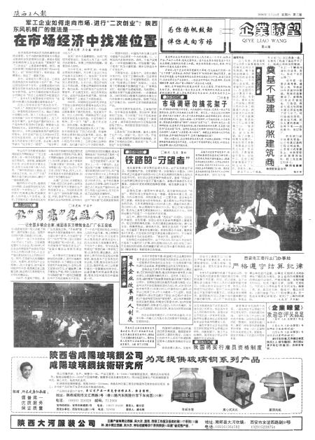 中华人民共和国报第3版 在市场经济中找准位置 企业瞭望 市场调研勿搞花架子 奠基不基建愁煞建筑商 让“月亮”光照人间 铁路的“守望者” 图片新闻 图片新闻 日本企业改革用人制度 严格遵守结算纪律 我国将实行雇员资格制度 广告 广告