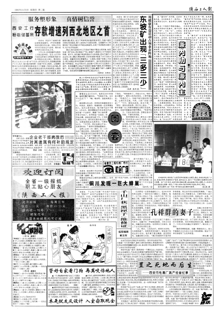 陕西工人报第2版 西安工行粉巷储蓄所存款增速列西北地区之首 东坡矿出现“三多三少” 兼内助与兼内主 图片新闻 企业老干部病故后对其遗属有何补助规定 圈套 铜川发现一巨大蜂巢 图片新闻 广告 千山厂获“黑匣子”维修证 孔祥群的妻子 广告 图片新闻 管好自家看门狗再莫咬伤他人 本是狱友反设计入室窃取现金 置之死地而后生