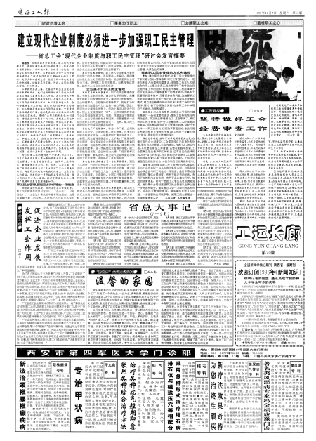 陕西工人报第3版 建立现代企业制度必须进一步加强职工民主管理 坚持做好工会经费审查工作 图片新闻 发挥工会作用促进企业发展 省总大事记 温馨的家园 广告 广告