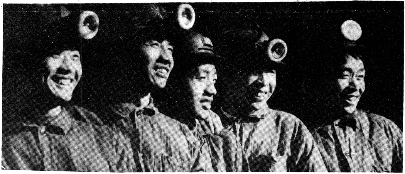 ▲铜川矿务局鸭口矿掘五队有兄弟五人同当掘进工,被传为佳话。多年来,他们吃苦耐劳,团结友爱,携手前进。老大姜传红(左二)曾被评为局先进生产者,老二姜传东(左五)、老三姜传武(左三)也都先后被评为矿先进生产者。在他们的鼓动下堂兄弟姜传顶(左一)、姜传阔(左四)也来矿上当了农协工。