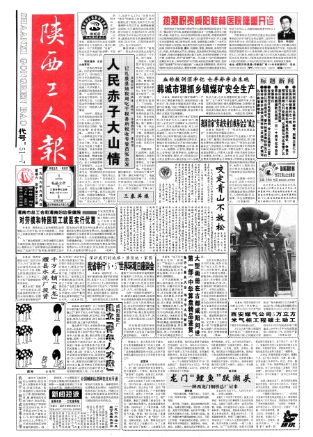 陕西工人报头版 西橡厂技改缺资金 广告 成阳市对16个利税大户挂牌保护 图片新闻 陇海线道口看守人吊用上对讲机 韩城市十年投入亿元保护历史名城 宝桥厂领导自觉接受职工监督 今年我省国际旅游呈上升态势 标题新闻 不能闲着“媳妇”雇“保姆” 1995年度“陕西新闻奖” 本报三篇作品获全国工人报刊好新闻好作品奖 《脊梁》荣获省“五个一工程”奖 图片新闻 图片新闻 我国最大天然气田投入开发 北京站买票的长龙不见了 水乡女子黄土情