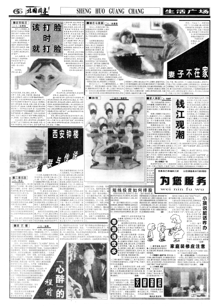 陕西工人报第6版 该打“脸”时就打脸 妻子不在家 西安钟楼楹联与传说 钱江观潮 “心醉”的程前 图片新闻 短线投资如何择股 春游话饮水 小孩说脏话咋办 家庭装修应注意 灭鼠新招