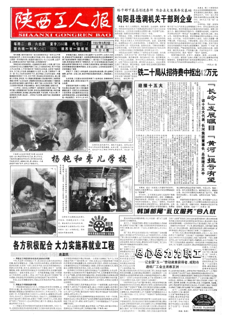 陕西工人报头版 江泽民同志在十五大作的报告 中国共产党第十五次全国代表大会开幕 承前启后 继往开来