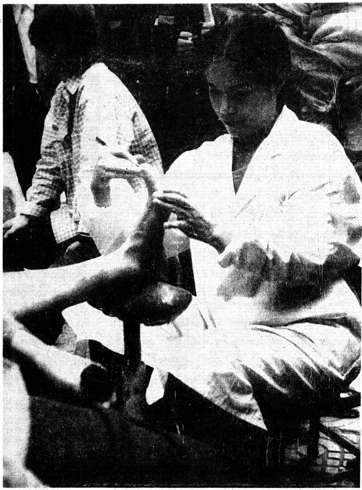6年前,正值妙龄的王芙蓉从陕棉十二厂下岗,苦闷的她曾在餐厅、打字复印部当过临时工,两年前她听说龙凤泉缺少修脚工,便冲破传统观念的束缚,顶住亲朋好友的反对,来到龙风泉脚病诊所学起了修脚。两年来她已为数千名脚病患者医好了脚病。国庆节期间,她又走上街头为脚病患者义务修脚。一位老大妈不解地问:“闺女,你年纪轻轻为啥干起了这?”她笑笑说:“企业有困难,咱也得想办法谋出路啊!”图为王芙蓉走上街头,义务为脚病患者服务。赵录贤摄