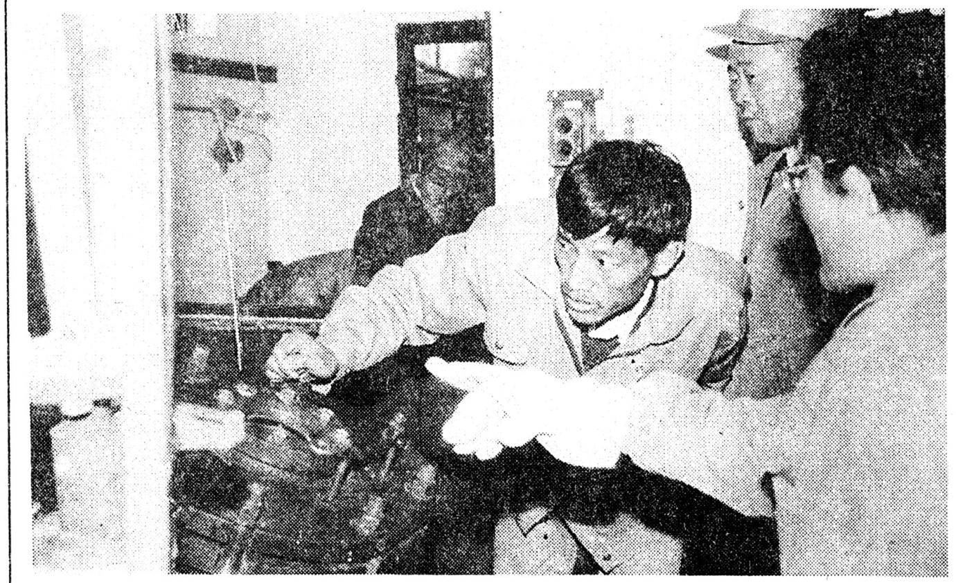 宝鸡市化工厂把对老产品的技术改进和新产品的开发作为工作重点,取得了显著的经济效益。今年1至10月份实现利税94万元、销售收入1260万元,职工人均收入增长了40%。他们仅用70多天,建成一套目前西北地区唯一生产硫酸的生产线,并生产出了第一批合格产品。不但为企业增加了新产品,而且还解决了部分家属子女的就业问题。图为:厂技术人员在新投产的车间进行技术指导。 尤建平 摄