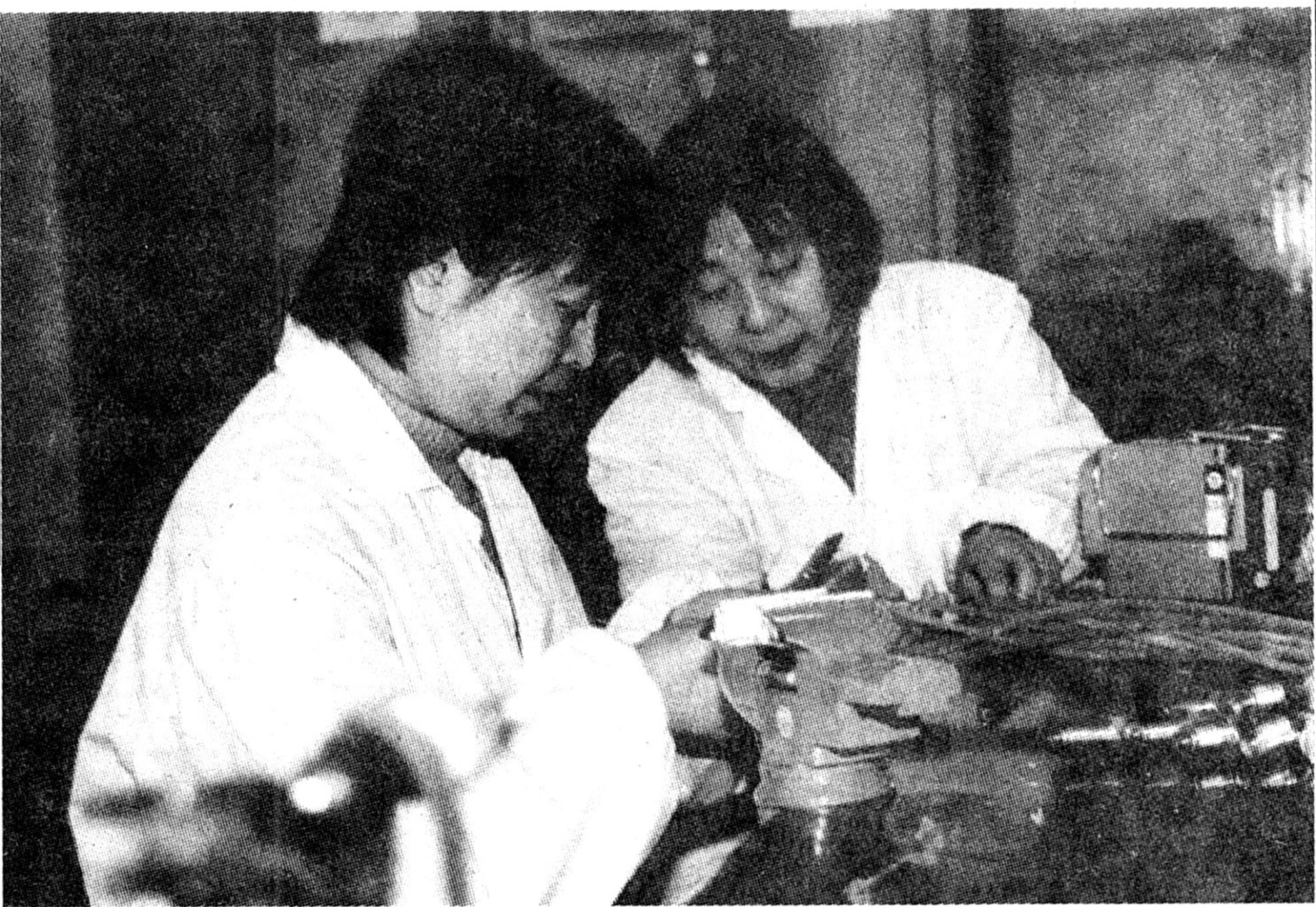 航天科技集团公司11所测控中心利用航天高科技技术研究制生产的声光控全自动电子节能开关,节能效果达90%,被誉为“长明灯的克星”,成为国家能源部积极推广的节能产品之一;图为该中心的职工在精心加工产品元器件。 杨军摄/文