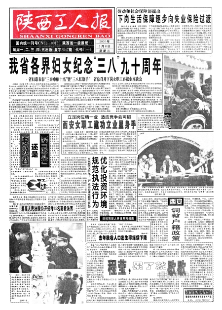 陕西工人报头版 图片新闻 陕西省非公有制经济增幅连续两年居全国第一 海关总署出台政策鼓励外商投资办企 西安经济技术开发区进入“国家队” 陕西将推出周秦汉唐旅游区 图片新闻 陕西贫困县工资好领了 标题新闻 干,就有希望 图片新闻 图片新闻 任何人都必须接受正常采访 0六七基地调整发展思路迎接挑战 省七建重奖优秀项目经理 我国核电设备制造获历史性突破 国际奥委会和澳府承诺加强药检 上海不再新办国有独资旅行社 科学家探测将揭示暗物质的重粒子 黄河“水账”已基本算清 张桥车务段开辟“绿色通道” 广告
