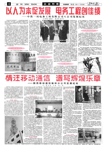 陕西工人报企业形象 以人为本促发展 电务工程创佳绩 情注移动通信 谱写辉煌乐章