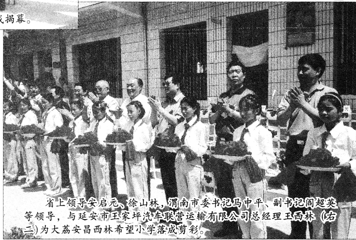 2001年6月,陕西大荔安昌村小学举行隆重的建校剪彩仪式,省上领导安启元、徐山林来了,渭南市委书记马中平、副书记阎超英来了,大荔县及安昌村所属的乡村各级领导和成百上千的群众都来了,大家兴高彩烈,场面极为热烈……