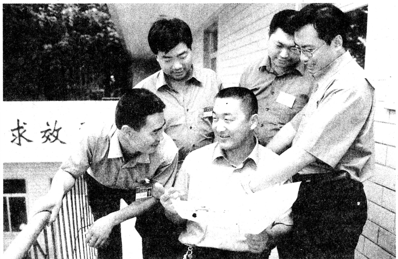 “城区带电小报已办了8期了”,西安供电局城区带电班班长樊胜利说。该班只有6人,电一支善打仗,作风硬朗的小集体。从2001年起,他们开办了自己的小报,内容有班组建设,作业心得,经验交流等,可谓栏目齐全。 图为他们在商量下期小报内容。