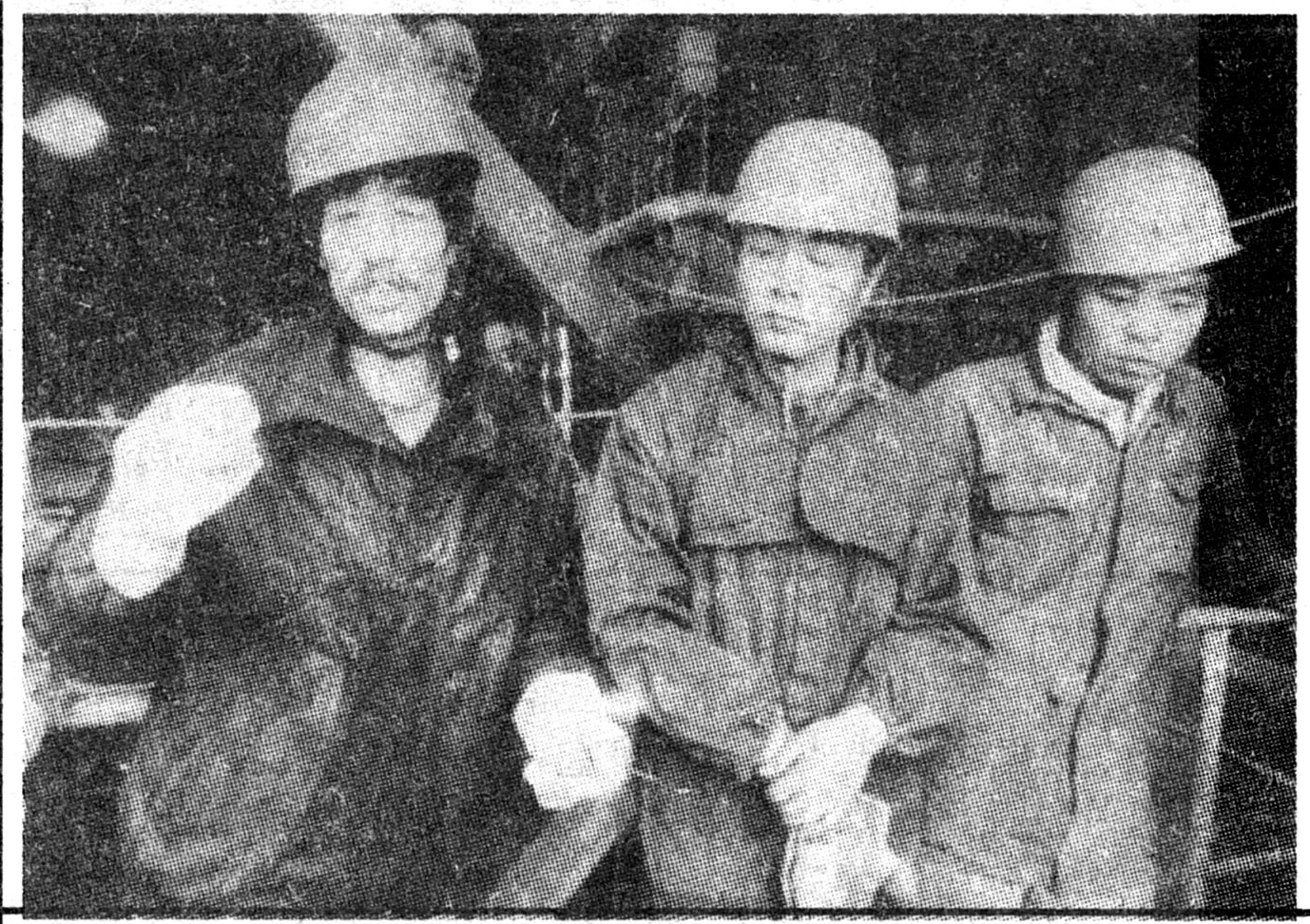 左图:锅炉本体班为确保安全生产,立下汗马功劳。班长赵宝平(左一)说:“实行安全文明生产,对厂对职工都有利”。
