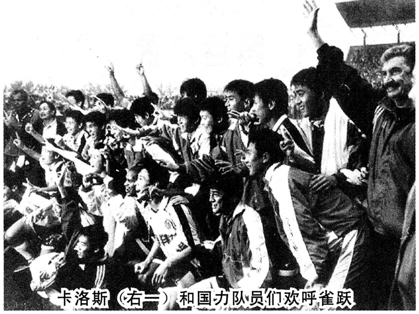 这时,国力球员紧紧拥抱,鱼跃匍伏绿茵场向球迷致谢,并将卡洛斯教练一次次向空中抛举,以表达五年艰辛、历经坎坷终于圆了冲A梦想的喜悦。至此,2000全国足球甲B联赛落幕,国力、八一队冲A成功,松日、波导两队降级。(薛喻阳)