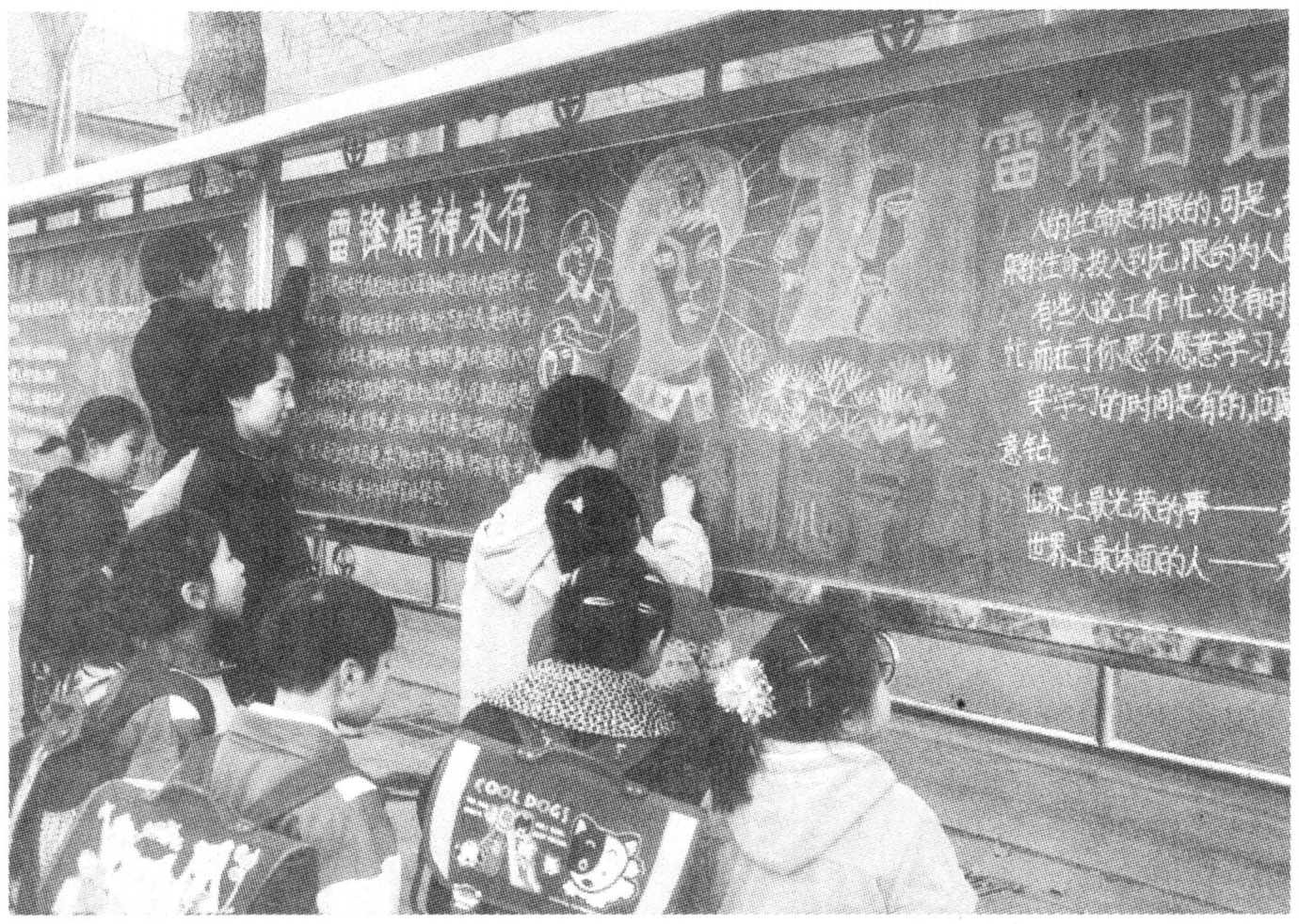 西工大附小近日开展“学雷锋精神,做文明使者”系列活动,同学们踊跃参加,争做21世纪小雷锋。图为学生们用黑板报宣传雷锋精神。