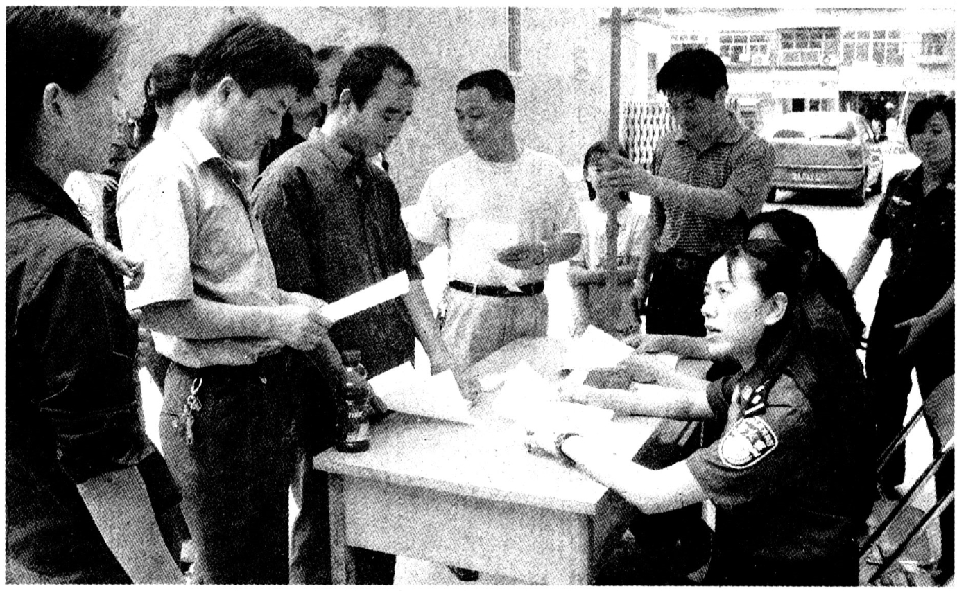 “走进社区,上门为群众服务”。西安市西关派出所干警利用休息日到长安航空公司家属区,为职工和家属办理新身份证及户口业务,受到欢迎。