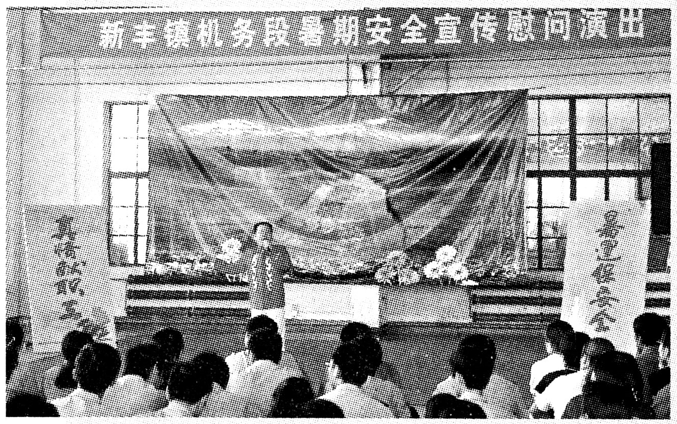 在战酷暑、保安全的日子里,新丰镇机务段的安全生产文艺宣传队也忙了起来,他们自编自演了相声、快板、小品等13个突出安全法规主题的文艺节目,结合暑期“送清凉”活动,深入到沿线公寓、折返点、家属区进行表演,深受职工的喜爱。 杨全辉 郭宝会 摄