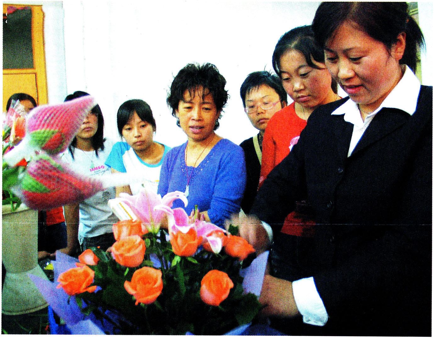 李婷是陕北人,从家乡到西安打拼已经近10年,6年前靠勤奋努力拥有了自己的花店,现在受聘为省总工会农民工业余学校的代课老师,为学员义务讲授插花技艺。“今天是第一次走进课堂给大家讲课,第一次当老师很紧张,但是也感受到这些农民工们的热情和尊重,因为我也是农民工,我希望他们都能生活好一些。”李婷说:“这些学员最少要经过3个月的专业培训就能上岗,我们还将安排他们到我的花店实习,结业后将推荐到一些大花店工作,这个职业现在很缺人,熟练工包吃住每月能拿到600-1000元不等的工资。”