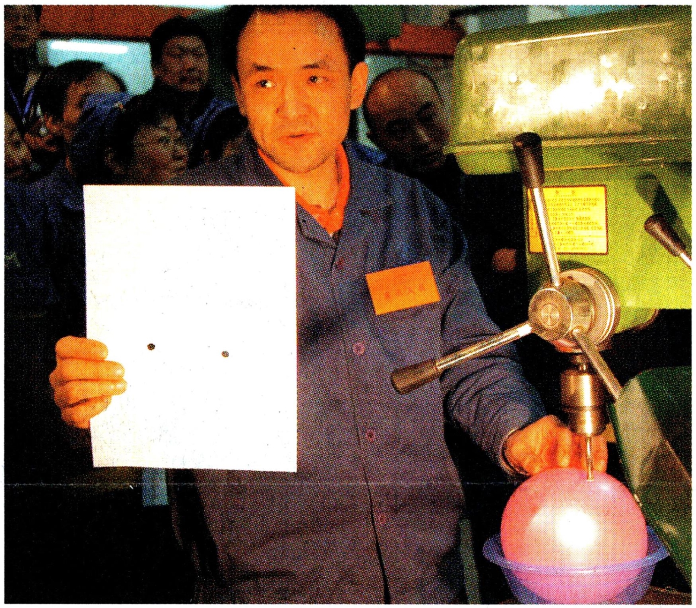 12月9日,陕西省高技能人才技能演示活动在西安庆安集团有限公司正式启动,参加演示的选手来自我省的不同企业,他们中包括在全国、全省职业技能竞赛中获奖的选手,演示的工种为车、钳、铣、焊。鸡蛋上钻头发、气球上钻纸等技能演示吸引了大批来自各企业的观摩代表。图为一名演示人员正在进行演示活动。