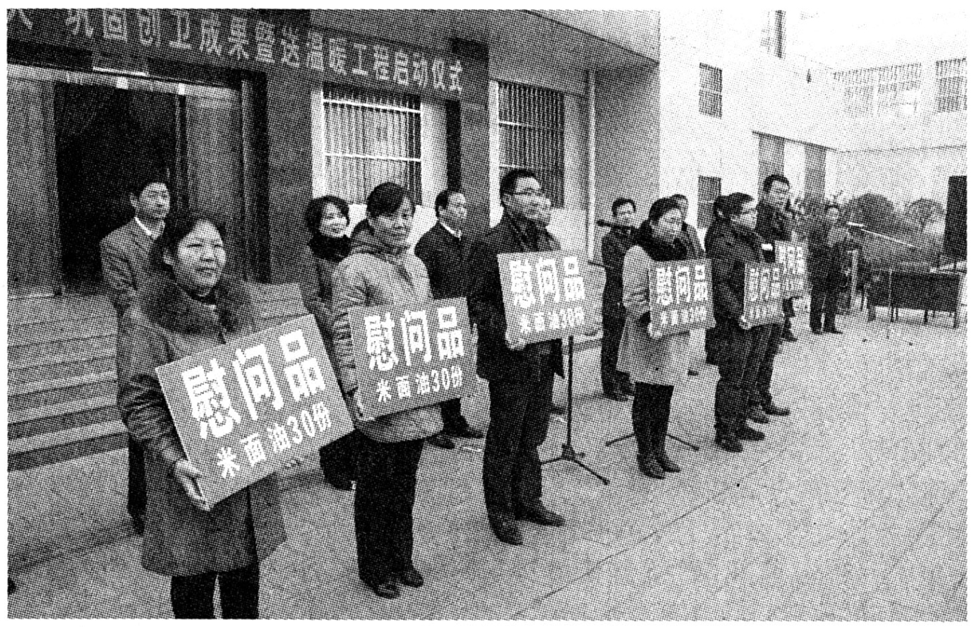 12月17日上午,合阳县总工会关爱环卫工人送温暖工程启动仪式在县困难职工援助中心举行,市总和县级领导慰问了全体环卫工人和部分困难职工代表,现场为他们发放了御寒大衣和米、面、油等慰问品。 杨涛 摄