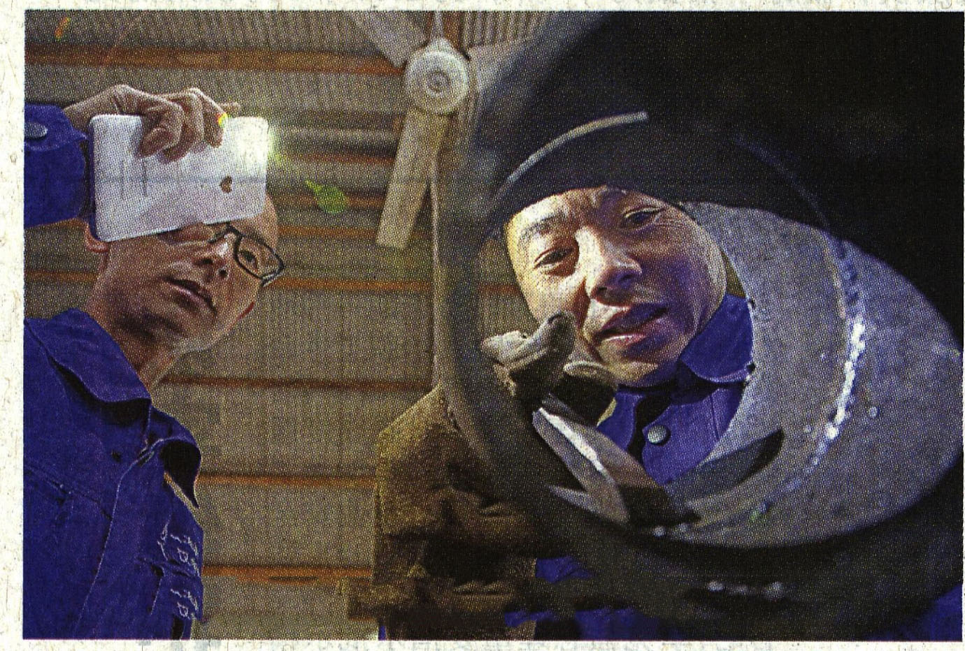 提起“带压补漏焊接”,袁培东说:“重点在思考!设备不停止,在保持整体压力的情况下想出办法把漏点部位压力减下来,再采用栽螺丝或管外(大管)套盒子的办法进行焊接补漏。”“道理简单,可拼的是智慧!像焊接打底,焊道就像烙饼,火候大了就糊了。”看似简单的焊接,袁培东实践出了许多道道。