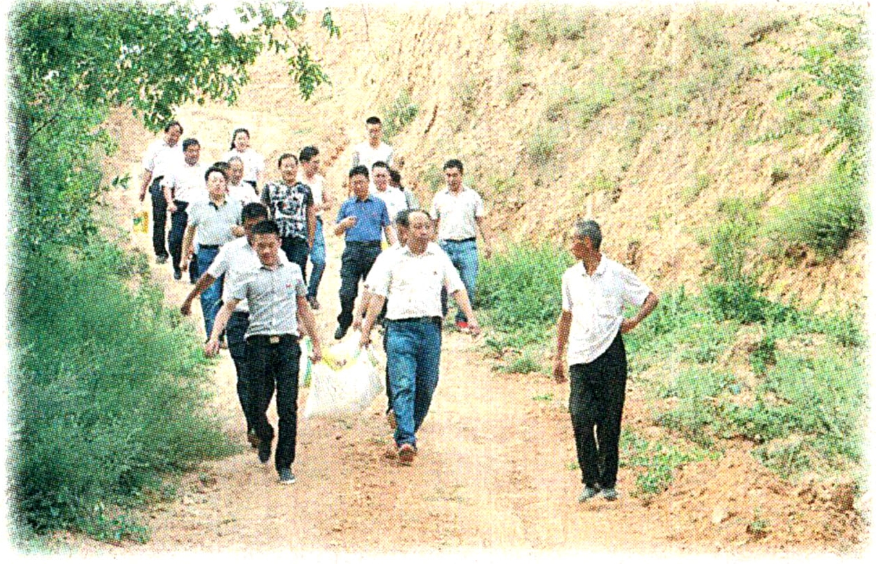 在陕北黄土坡沟沟壑壑的山脊上,沿着崎岖蜿蜒的山路,一群身戴党徽的党员干部,扛着米面粮油等生活用品,来去匆匆地忙碌着,这是神南矿业公司及所属单位扎实开展“主题党日+助力精准扶贫”活动的一幕。