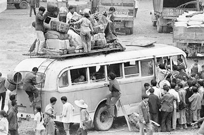 1983年,广东,梅县侨乡第一次降下民航飞机,吸引了围观群众。