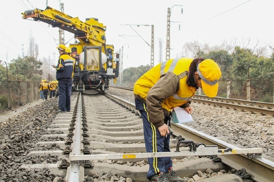 路面上的春意逐渐露出枝芽,在地下西安地铁的春检工作早已如火如荼地展开。3月27日凌晨,西安市轨道集团运营分公司通号一部的专业人员,正在对道岔设备进行专项检查。庞翔 摄
